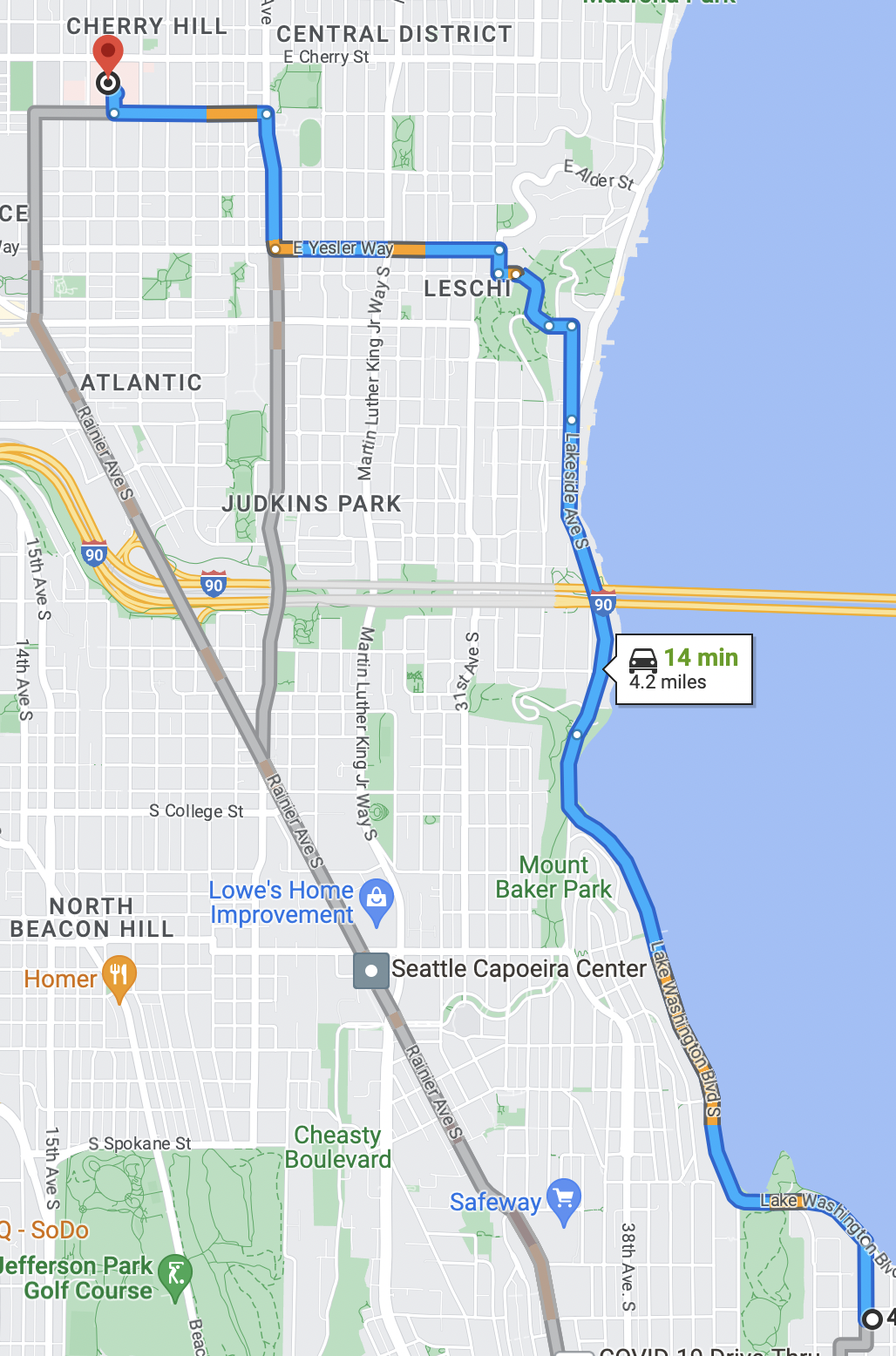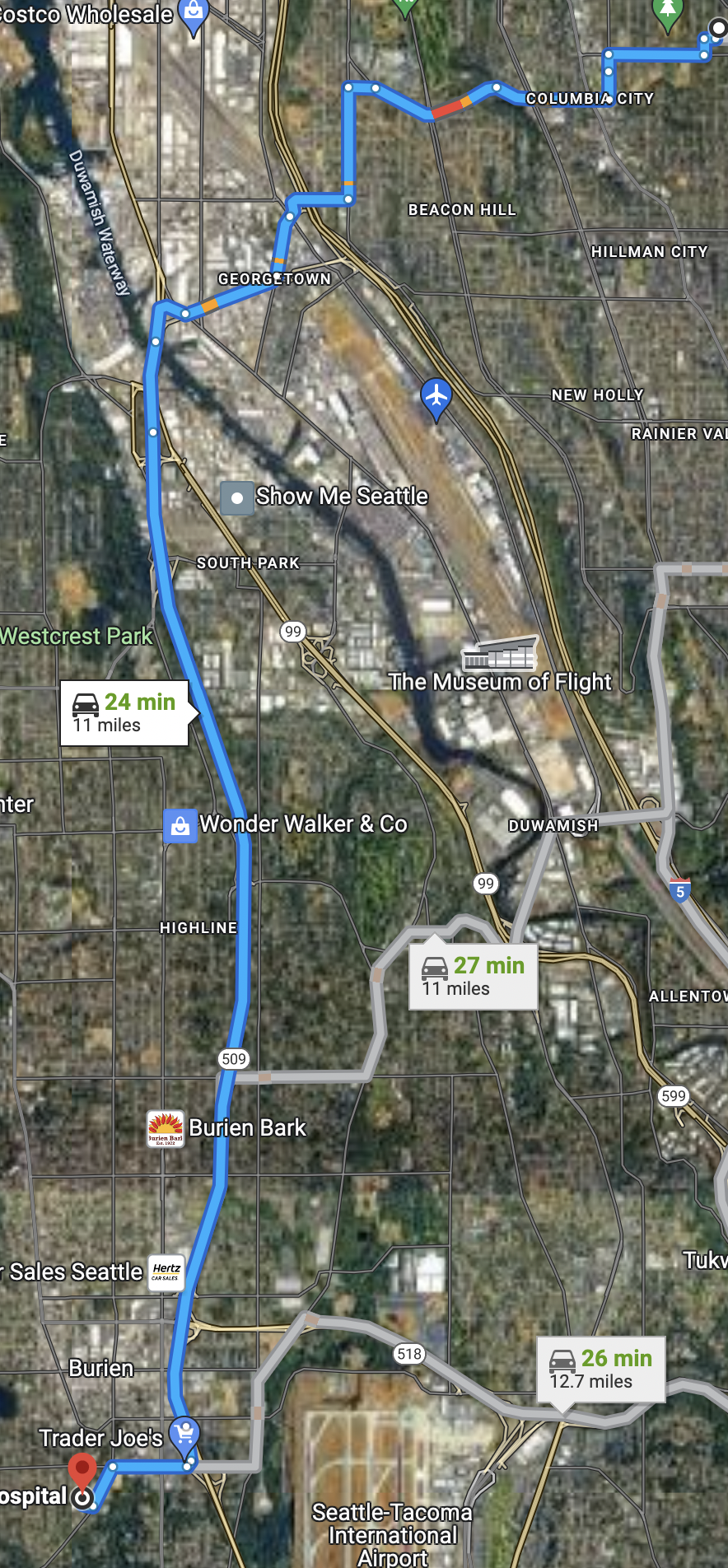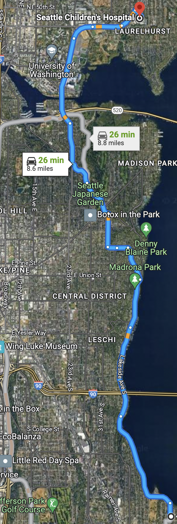 Overlake Hospital, Bellevue, WA— 30 mins (see explanation under the map)