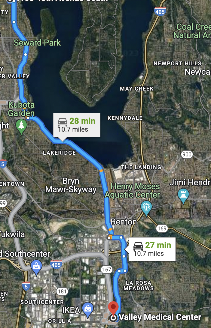Valley Medical Center, Renton, WA—30 minutes (traffic is pretty good, no highways)