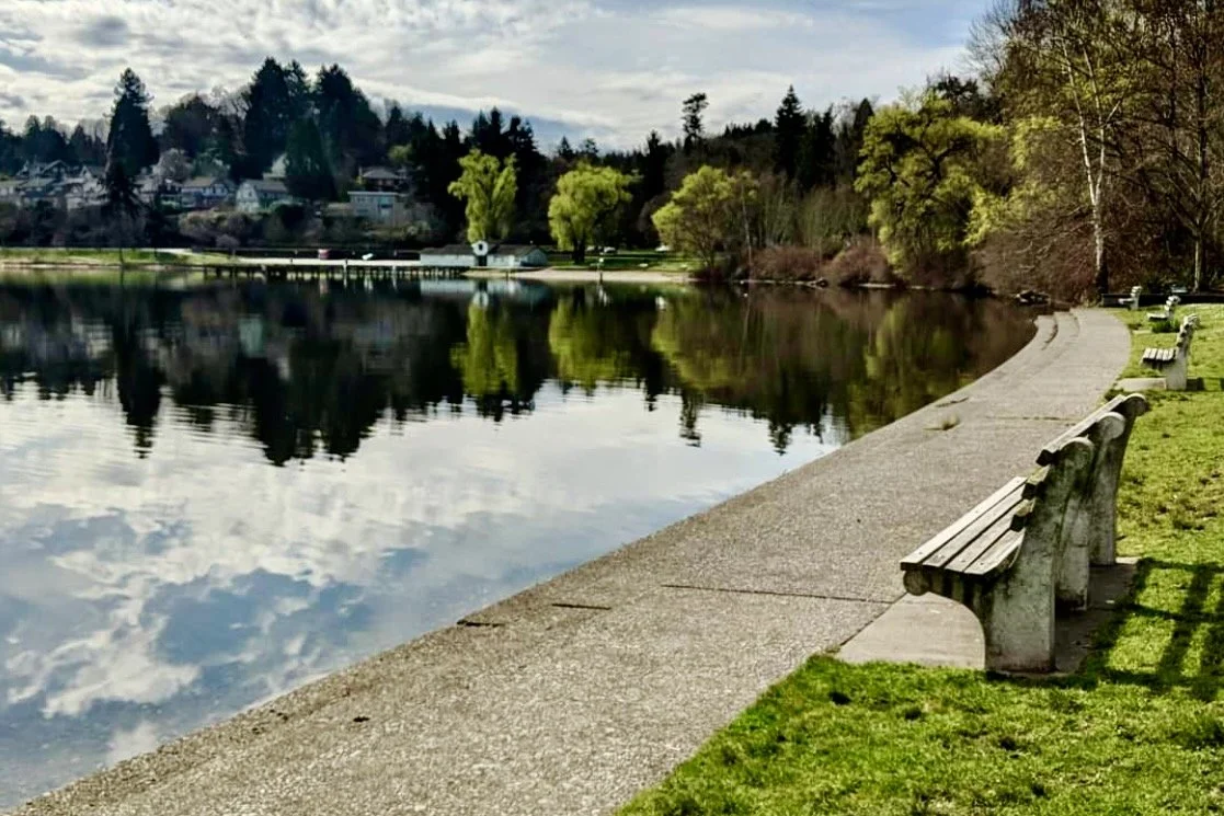 Just two-short blocks, down our street, you’ll find a swimming beach and a 5-mile walking path along the shore of Lake Washington. The path goes from Mt. Baker Beach, which has a swimming dock and lifeguards S. to Seward Park. Seward Park has over 250 acres of old-growth forest (600 year-old trees), a swimming beach and a really great playground.